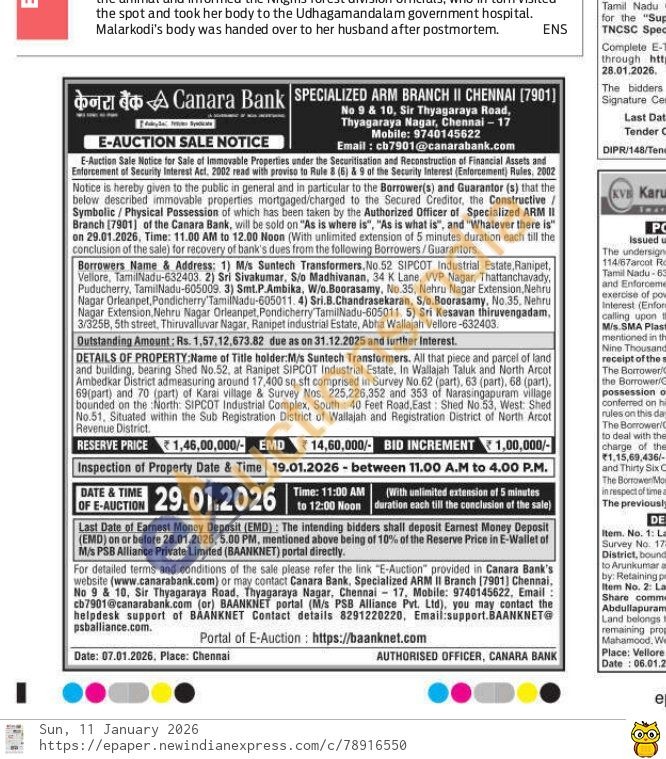 . All that piece and parcel of land and building, bearing Shed No.52, at Ranipet SIPCOT Industrial Estate, In Wallajah Taluk and North Arcot Ambedkar District admeasuring around 17,400 sq sft comprised in Survey No. 62 (part), 63 (part), 68 (part), 69(part) and 70 (part) of Karai village & Survey Nos. 225,226,352 and 353 of Narasingapuram village bounded on the North: SIPCOT Industrial Complex, South: 40 Feet Road, East: Shed No 53, West: Shed No.51, Situated within the Sub Registration District of Wallajah and Registration District of North Artot Revenue District.
