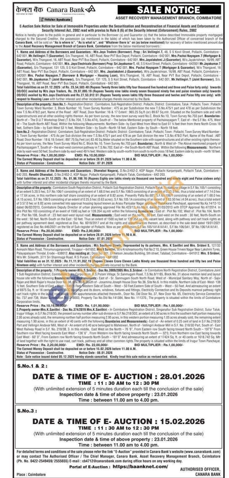 Description of the property: Coimbatore South Registration District, Pollachi Sub Registration District, Pollachi Taluk, Thalakkarai village in S.F.No. 105/1 consisting of an extent 5.20. 5 hec, S.F.No. 106/1 consisting of an extent of 1.68.0 hec and S.F.No. 106/3 consisting of an extent of 0.25.5 hec, thus a total extent of 7.14.0 hec or 17.64 acres, in this northern side half share consisting of an extent of 8.82 acres. Presently Patta No.681, S.F.No.106/1 consisting of an extent of 1.68.0 hec (4.15 acres), S.F.No. 106/3 consisting of an extent of 0.25.5 hec (0.63 acres). S.F.No. 105 1A consisting of an extent of 1.63.50 hec (4.04 acres), thus a total extent of 3.57.0 hec or 8.82 acres converted into approval housing layout known as Arasu Paniyalar Nagar approved Thalakkarai Panchayat, approved Na.Ka. 14/12-13 dated 06/02/2013, Coimbatore Deputy Director of urban planning approved File No. 423/13, Ko Ma 4, dated 01/03/2013 with DTCP Approval No.47/2014. In this Plot No. 103 consisting of an exent of 1500 sq.feet or 139.354 sq.mtr within the following Boundaries: East of: Plot No.102, West of: Plot No. 104, North of Plot No.108, South of 23 feet east-west layout road. Measurements: East-west on the north: 30 feet, East-west on the south 30 feet, North-South on the west: 50 feet, North-South on the East: 50 feet. Thus an extent of 1500 sq feet or 139.354 sq.mtr, vacant land, along with pathway and cart track rights as per pathway agreement deed, registered as Doc. No. 6018/2017 and all the rights and appurtenances thereon, as described in the sale deed dated 19/01/2021 registered as Doc No.446/2021 on the file of Sub-register of Pollachi. Now as per subdivision S.F.No. 105/1A1A1A1A1, S.F.No. 106/3A1, SF No. 106/1A1A1A1