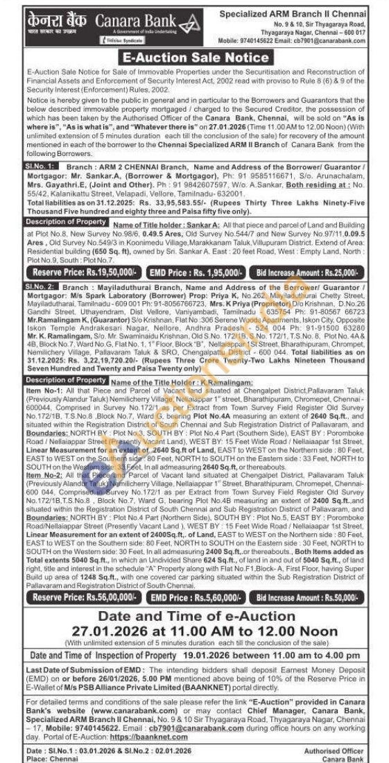 All that piece and parcel of Land and Building at Plot No.8. New Survey No.98/6, 0.49.5 Ares, Old Survey No.544/7 and New Survey No.97/11,0.09.5 Ares, Old Survey No.549/3 in Koonimedu Village, Marakkanam Taluk, Villupuram District. Extend of Area: Residential building (650 Sq. ft), owned by Sri. Sankar A. East: 20 feet Road, West: Empty Land, North: Plot No.9, South: Plot No.7