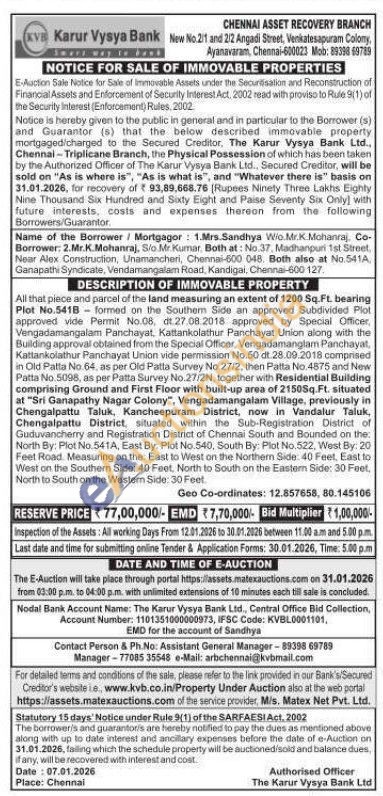 Contact Person & Ph.No: Assistant General Manager-89398 69789 Manager-77085 35548 e-Mail: arbchennai@kvbmail.com