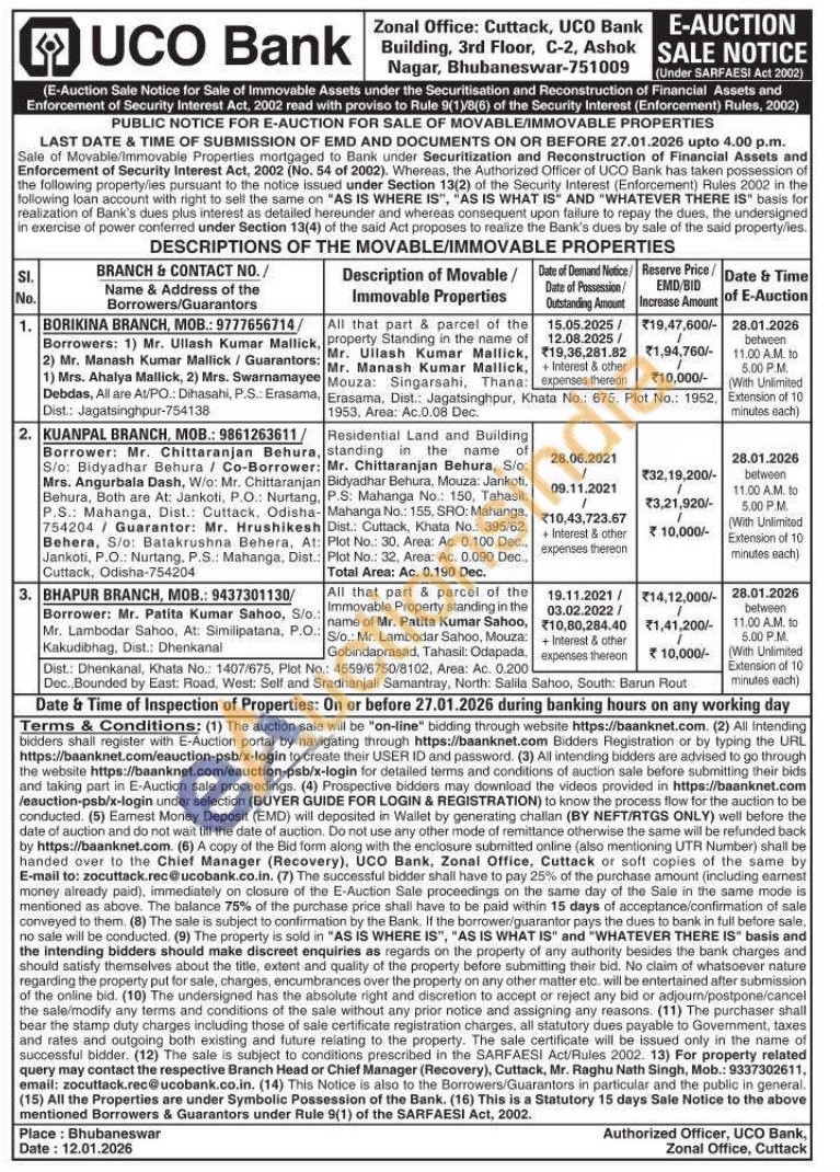 All that part & parcel of the Immovable Property standing in the name of Mr. Patita Kumar Sahoo, S/o.: Mr. Lambodar Sahoo, Mouza: Gobindaprasad, Tahasil: Odapada Dist.: Dhenkanal, Khata No.: 1407/675, Plot No.: 4559/6750/8102, Area: Ac. 0.200 Dec., Bounded by East: Road, West: Self and Sradhanjali Samantray, North: Salila Sahoo, South: Barun Rout