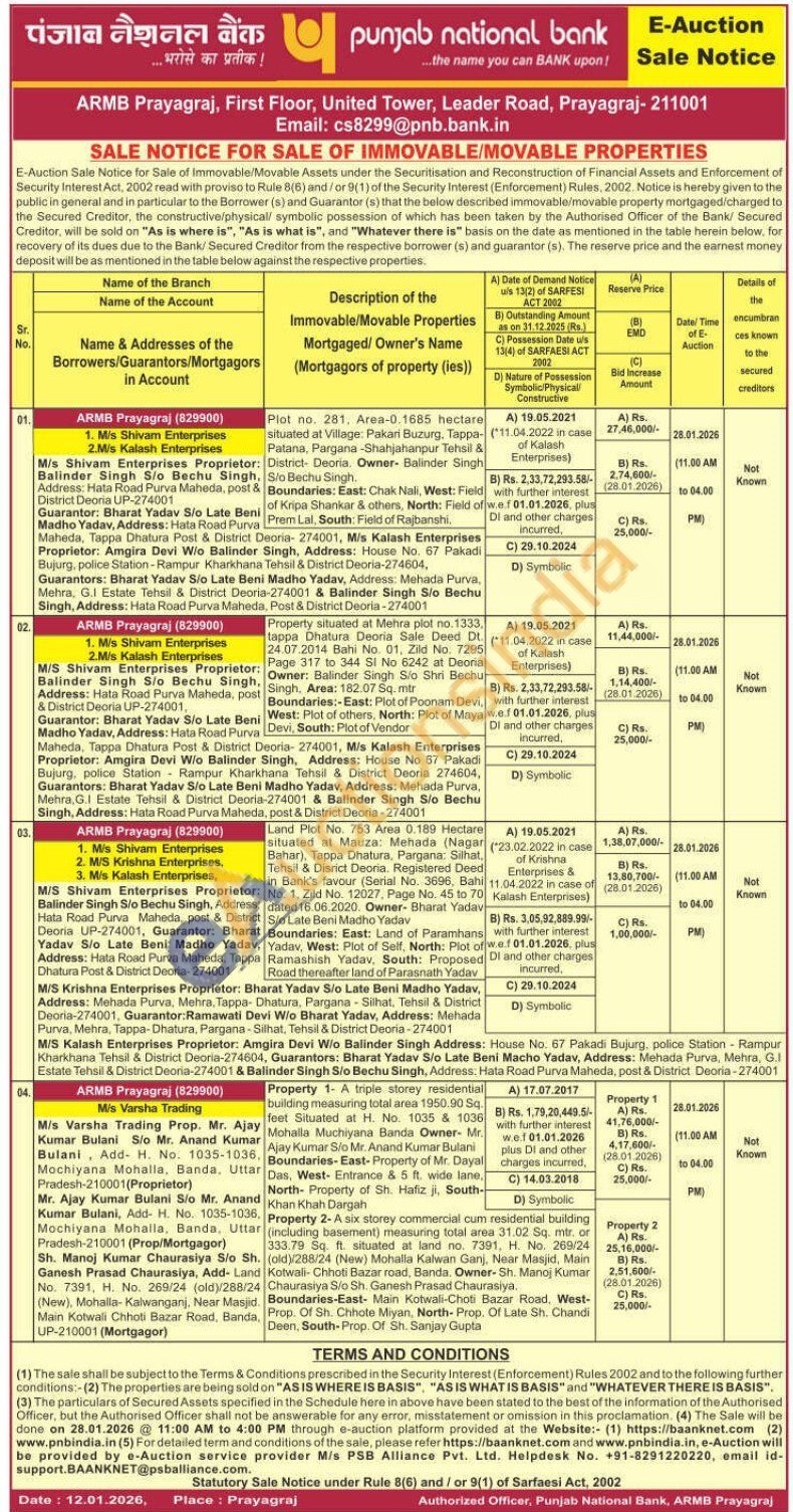 Property 1- A triple storey residential building measuring total area 1950.90 Sq. feet Situated at H. No. 1035 & 1036 Mohalla Muchiyana Banda Owner- Mr. Ajay Kumar S/o Mr. Anand Kumar Bulani Boundaries-East-Property of Mr. Dayal Das, West- Entrance & 5 ft. wide lane, North- Property of Sh. Hafiz ji, South-Khan Khah Dargah
