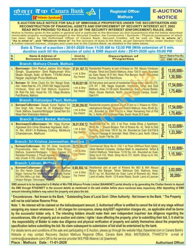 Commercial Shop No A-132 1 st Floor (Without Roof rights) Vikas Market Complex, Godiya Math to Jawaharhat, Tehsil & District Mathura, Total Area- 13.50 Sq. mtr., Bounded as: East-Shop no A-133, West-Shop No A-131, North- Shop no A-140, South-Verandah