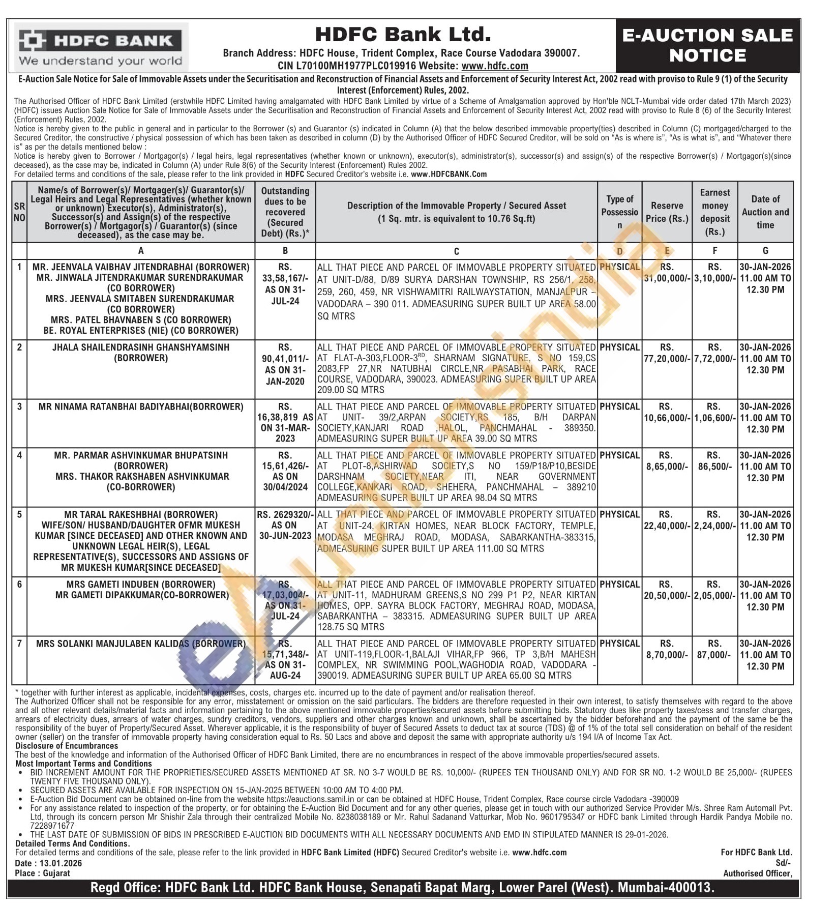 ALL THAT PIECE AND PARCEL OF IMMOVABLE PROPERTY SITUATED AT PLOT-8,ASHIRWAD SOCIETY,S NO 159/P18/P10,BESIDE DARSHNAM SOCIETY,NEAR ITI, NEAR GOVERNMENT COLLEGE,KANKARI ROAD, SHEHERA, PANCHMAHAL – 389210 ADMEASURING SUPER BUILT UP AREA 98.04 SQ MTRS