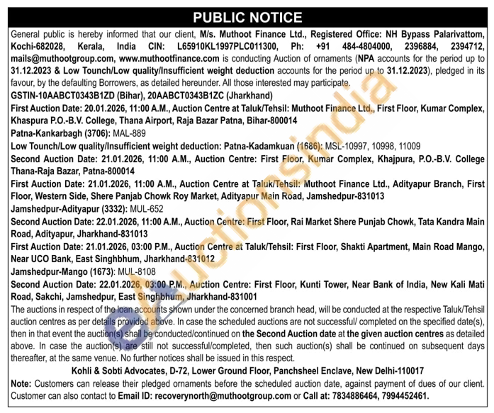 Muthoot Finance Ltd Gold Auctions Auction in Patna