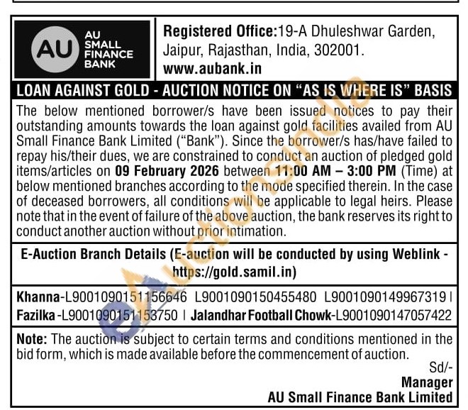 AU Small Finance Bank Gold Auctions Auction in Fazilka