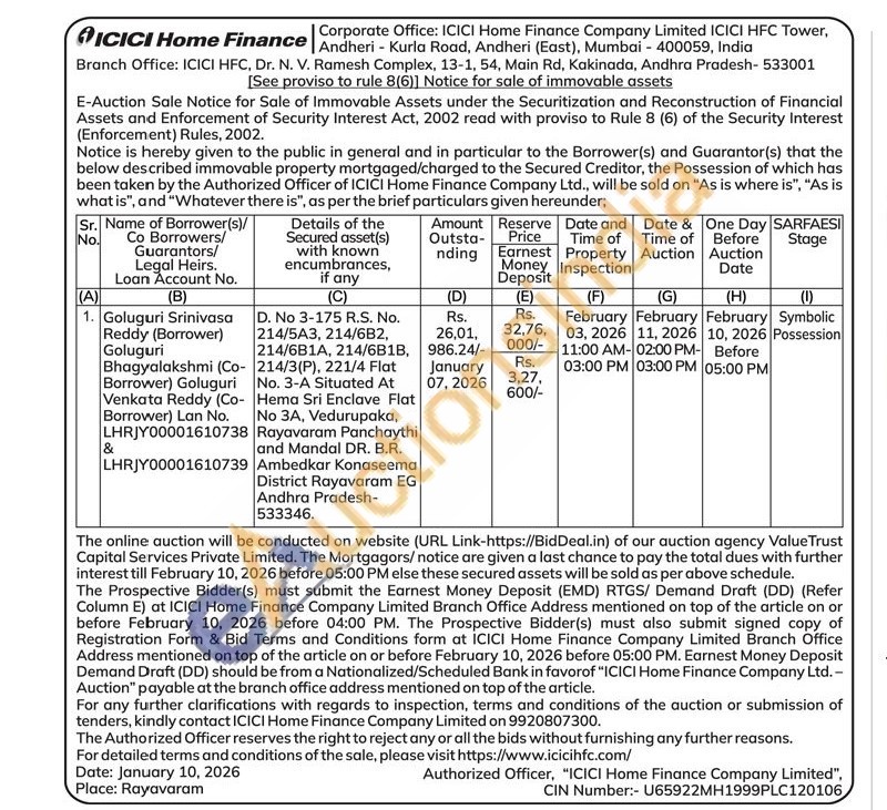 D. No 3-175 R.S. No. 214/5A3, 214/6B2, 214/6B1A, 214/6B1B, 214/3(P), 221/4 Flat No. 3-A Situated At Hema Sri Enclave Flat No 3A,Rayavaram Panchaythi Vedurupaka, and Mandal DR. B.R. Ambedkar Konaseema District Rayavaram EG Andhra Pradesh-533346.