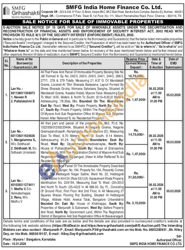 All That Piece And Parcel Of The Immobvable Property Described In Form No. 9, Junger, No. 194, Property No. 194, Presently Comes Under The Hebbagodi Nagar Sabhe, Ward No. 22, Hebbagodi Nagar Sabhe In Km124 (Rule 53(1)(A) Assessment Khata Property Identification No. 224/194, Measuring East To West: (29+30)/2) And North To South: (25+42)/2 In All 988.50, Sq. Ft., Consisting Of Ground Floor, First Floor And 2nd Floor, In All Measuring 27 Squares Mosaic Flooring Roc Building, Situated At Hebbagodi Village, Attibele Hobli, Anekal Taluk, Bangalore Urbandistrict Bounded On: East By: House of Krishnappa, South By: Properties of Manjunath & Subramani, West By: Sellers Property And Road, North By: Government Land, Within The Registration District of Bangalore And Sub Registration Office At Basavanagudi.