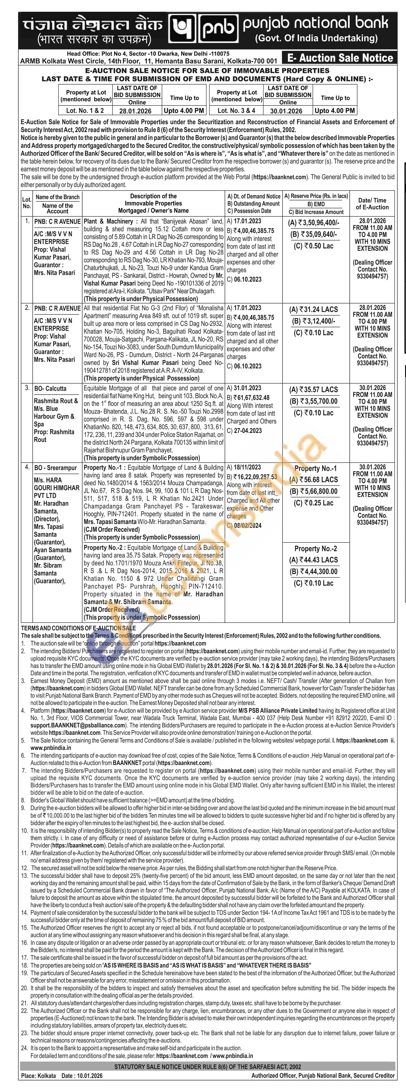 Equitable Mortgage of all that piece and parcel of one residential flat Name King Hut, being unit 103. Block No.A. on the 1" floor of measuring an area about 1250 Sq.ft. at Mouza-Bhatenda, J.L. No.28 R. S. No.-50 Touzi No.2998 comprised in R. S. Dag, No. 596, 597 & 598 under Khatian No. 820, 148, 473, 634, 805, 30, 637,800, 313,61, 172, 236, 11, 239 and 304 under Police Station Rajarhat, on the district North 24 Pargana, Kolkata 700135 within limit of Rajarhat Bishnupur Gram Panchayet