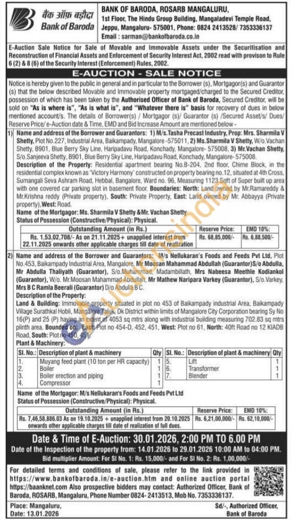 Description of the Property: Residential apartment bearing No.B-204, 2nd floor, Chime Block, in the residential complex known as "Victory Harmony' constructed on property bearing no. 12, situated at 4th Cross, Sumangali Seva Ashram Road, Hebbal, Bangalore, Ward no. 96, Measuring 1123 Sqft of Super built up area with one covered car parking slot in basement floor. Boundaries: North: Land owned by Mr.Ramareddy & Mr.Krishna reddy (Private property), South: Private Property, East: Land owned by Mr. Abbayya (Private property), West: Road.