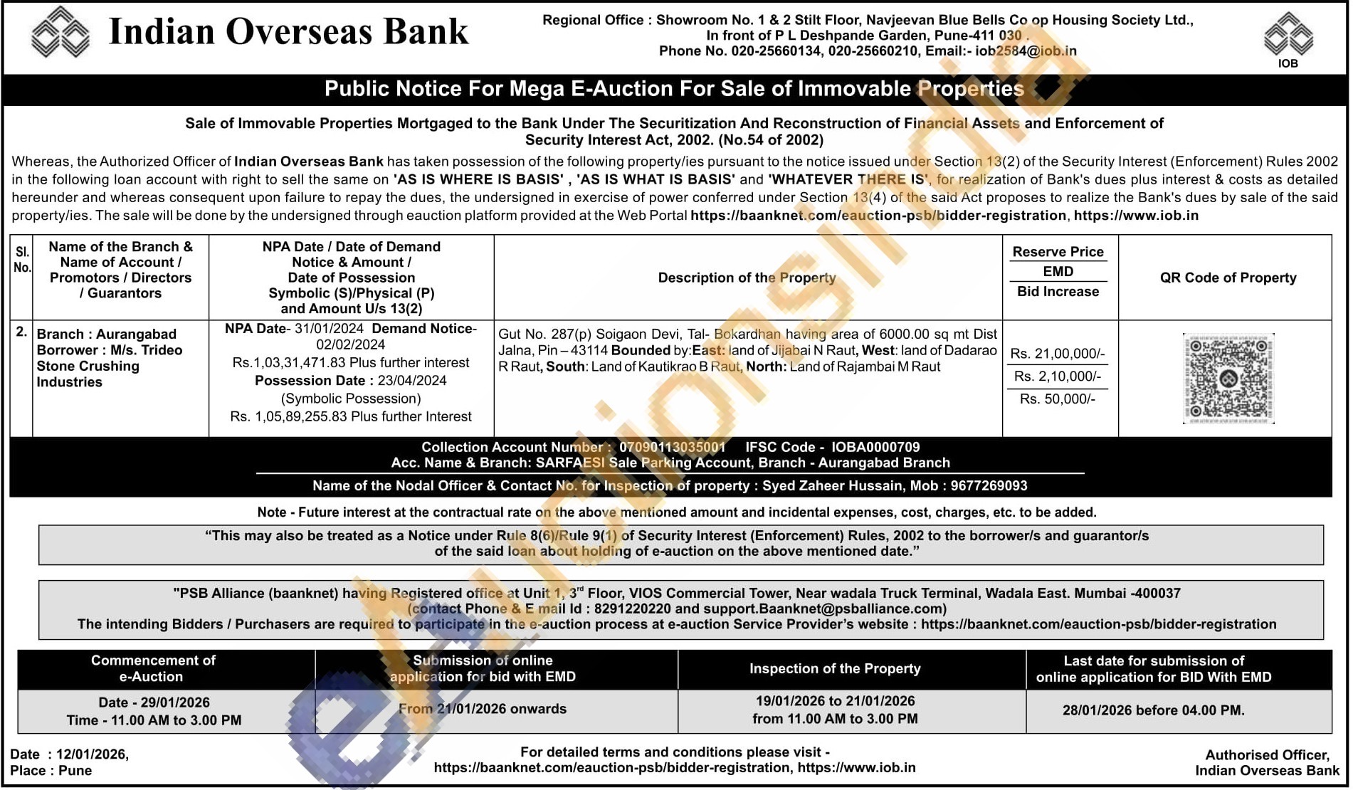 Gut No. 287(p) Soigaon Devi, Tal- Bokardhan having area of 6000.00 sq mt Dist Jalna, Pin-43114 Bounded by: East: land of Jijabai N Raut, West: land of Dadarao R Raut, South: Land of Kautikrao B Raut, North: Land of Rajambai M Raut
