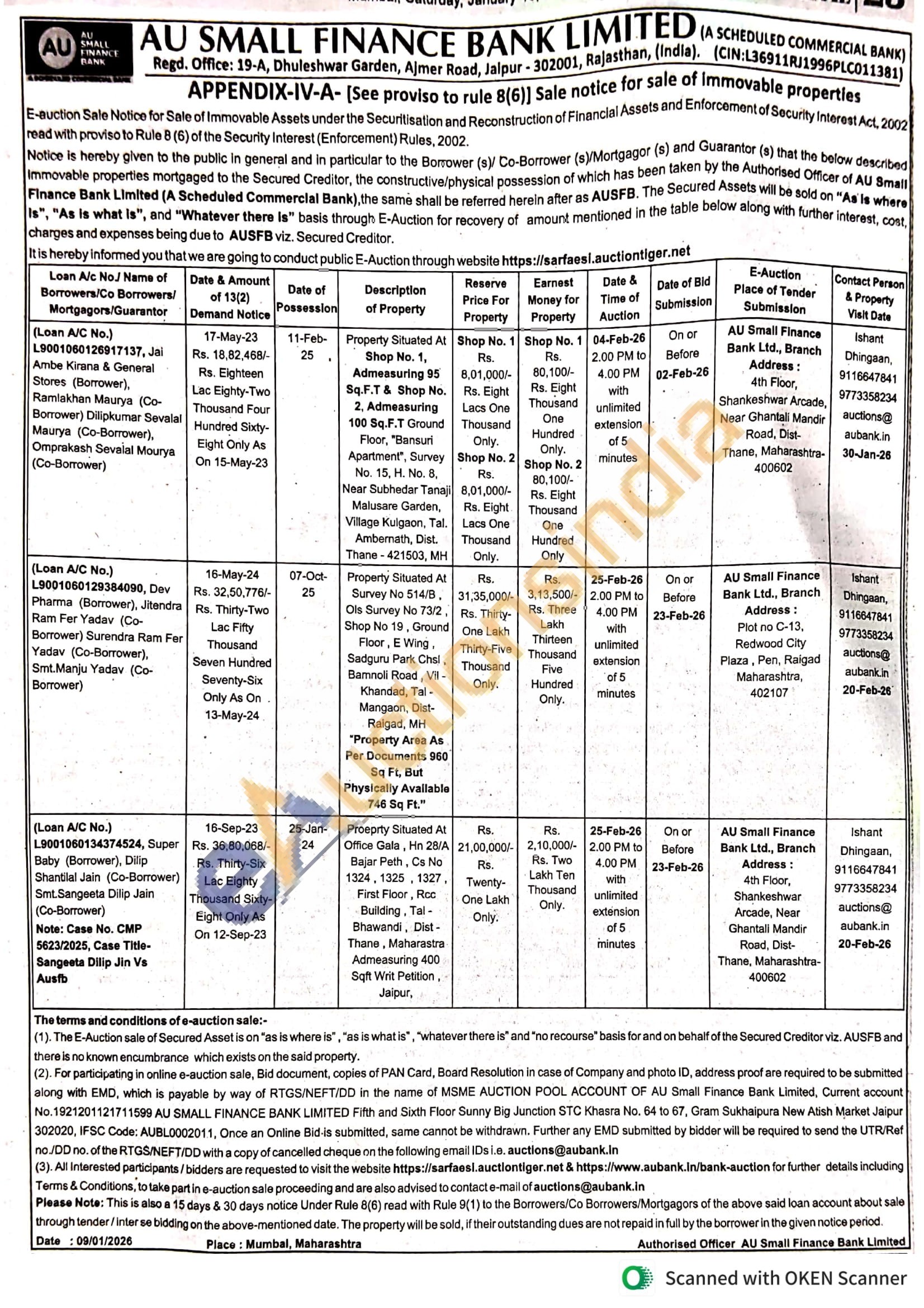 Proeprty Situated At Office Gala, Hn 28/A Bajar Peth, Cs No 1324 1325 1327, First Floor, Roc Building, Tal-Bhawandi, Dist -Thane, Maharastra Admeasuring 400 Sqft Writ Petition Jaipur