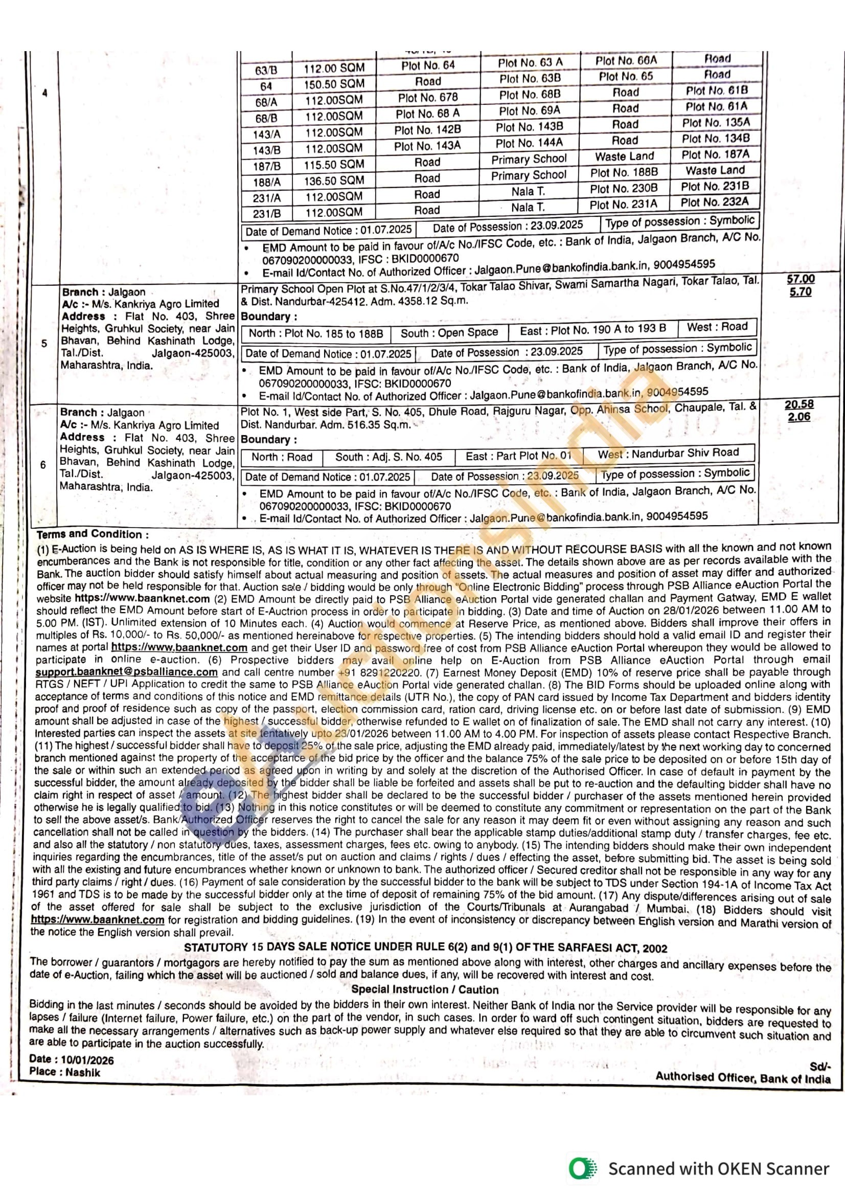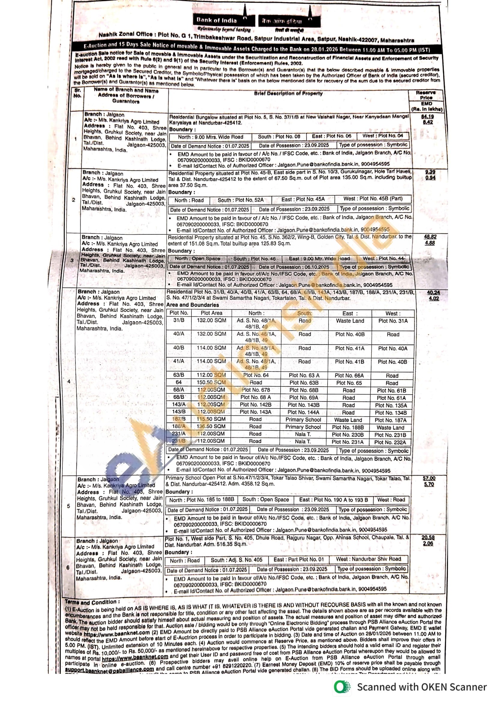 Contact E-mail Id/Contact No. of Authorized Officer: Jalgaon. Pune@bankofindia.bank.in, 9004954595