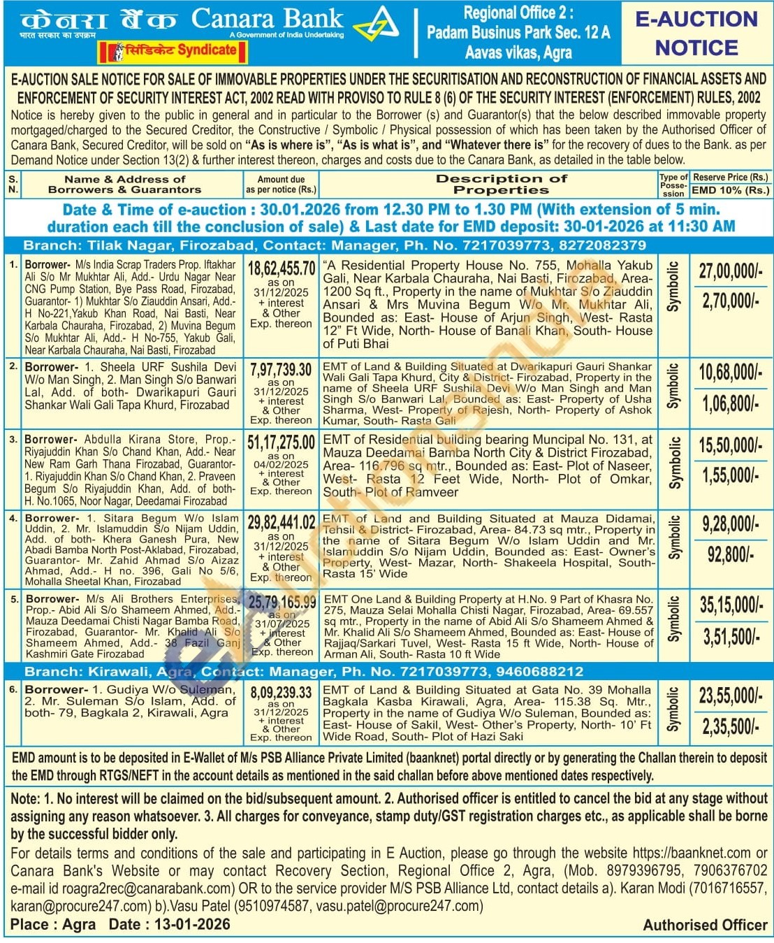 Branch: Tilak Nagar Firozabad Contact: Manager Phone No : 7217039773 / 8272082379