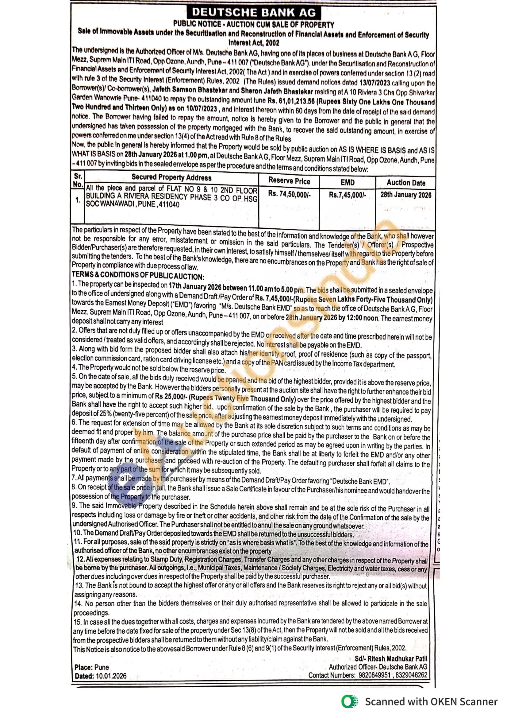 All the piece and parcel of FLAT NO 9 & 10 2ND FLOOR BUILDING A RIVIERA RESIDENCY PHASE 3 CO OP HSG SOC WANAWADI, PUNE, 411040