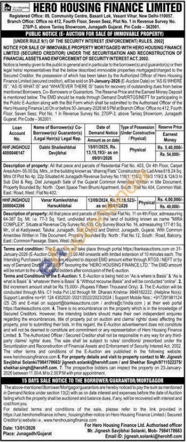Description of property: All that piece and parcels of Residential Flat No. 11 on 4th Floor, admeasuring 64-387 Sq. Mt. ie. 77-3 Sq. Yard, undivided share in the land of building known as name "MIRA COMPLEX, Situate at Revenue City Survey No.635, City Survey Block No. 16, admeasuring 177-81 Sq. Mr., of at Kadiyawad, Taluka: Junagadh, Sub District and District: Junagadh, Gujarat. With Common Amenities Written in Title Document. Property Bounded By: North: Flat No 12, South Road, Balcony, East: Common Passage, Stairs, West: Navelu