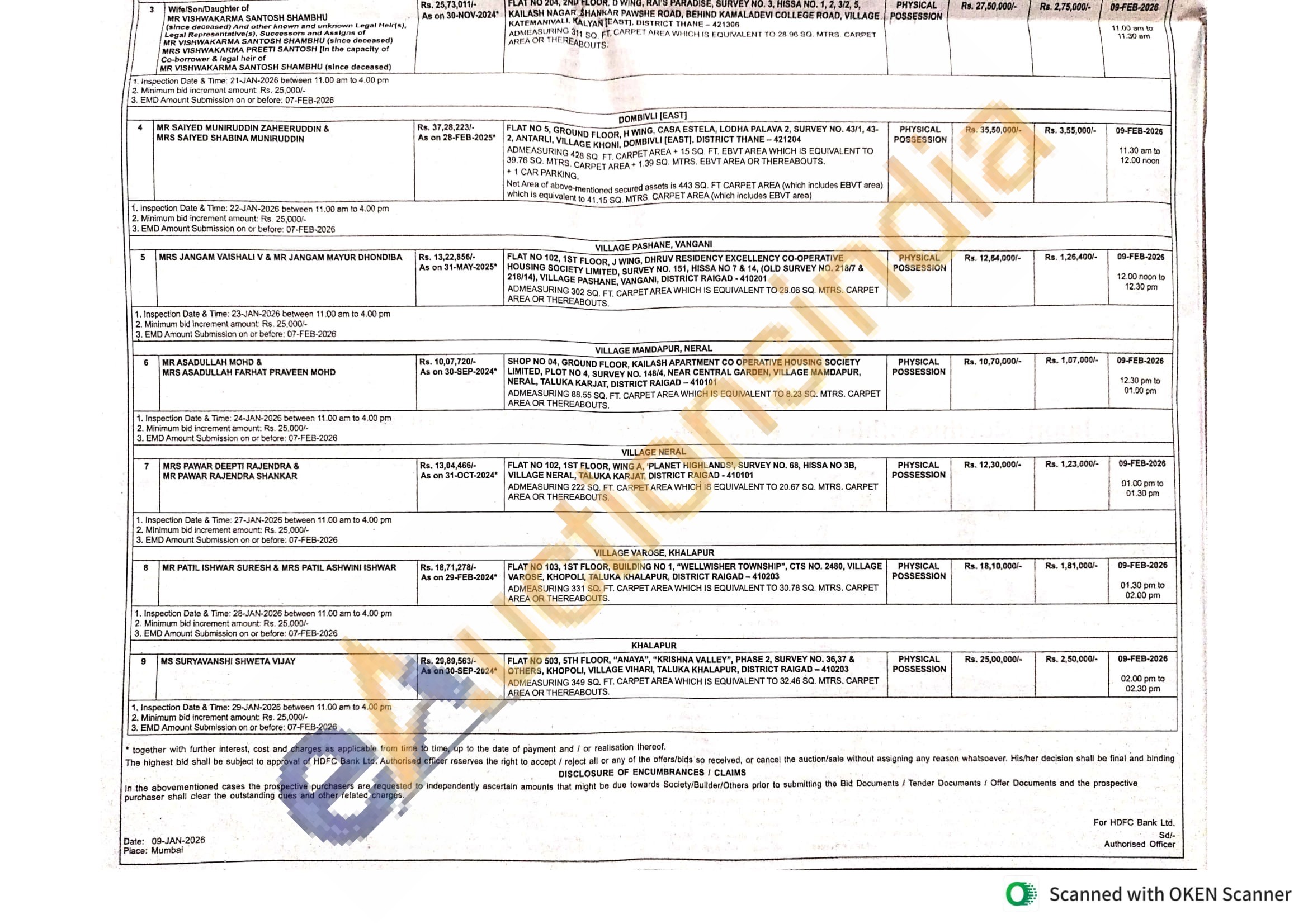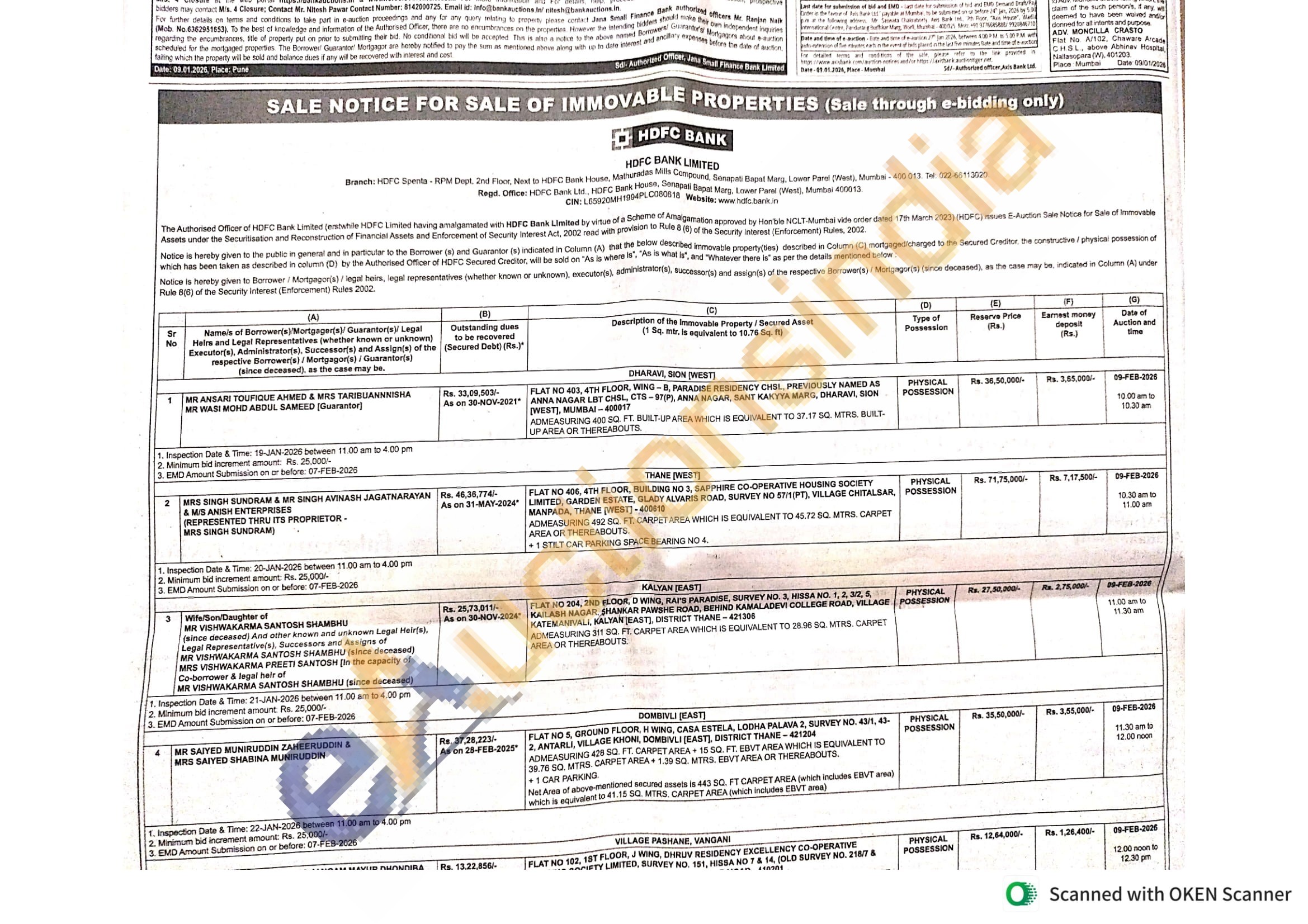 FLAT NO 5, GROUND FLOOR, Η WING, CASA ESTELA, LODHA PALAVA 2, SURVEY NO. 43/1, 43- 2. ANTARLI VILLAGE KHONI, DOMBIVLI (EAST), DISTRICT THANE-421204 ADMEASURING 428 RING 428 SQ FT. CARPET AREA 15 SQ FT. EBVT AREA WHICH IS EQUIVALENT TO 39.76 SQ. MTRS. CARPET AREA 1.39 SQ. MTRS. EBVT AREA OR THEREABOUTS 1 CAR PARKING. Net Area of above-mentioned secured assets is 443 SQ. FT CARPET AREA (which includes EBVT ares) which is equivalent to 41.15 SQ MTRS CARPET AREA (which includes EBVT area)