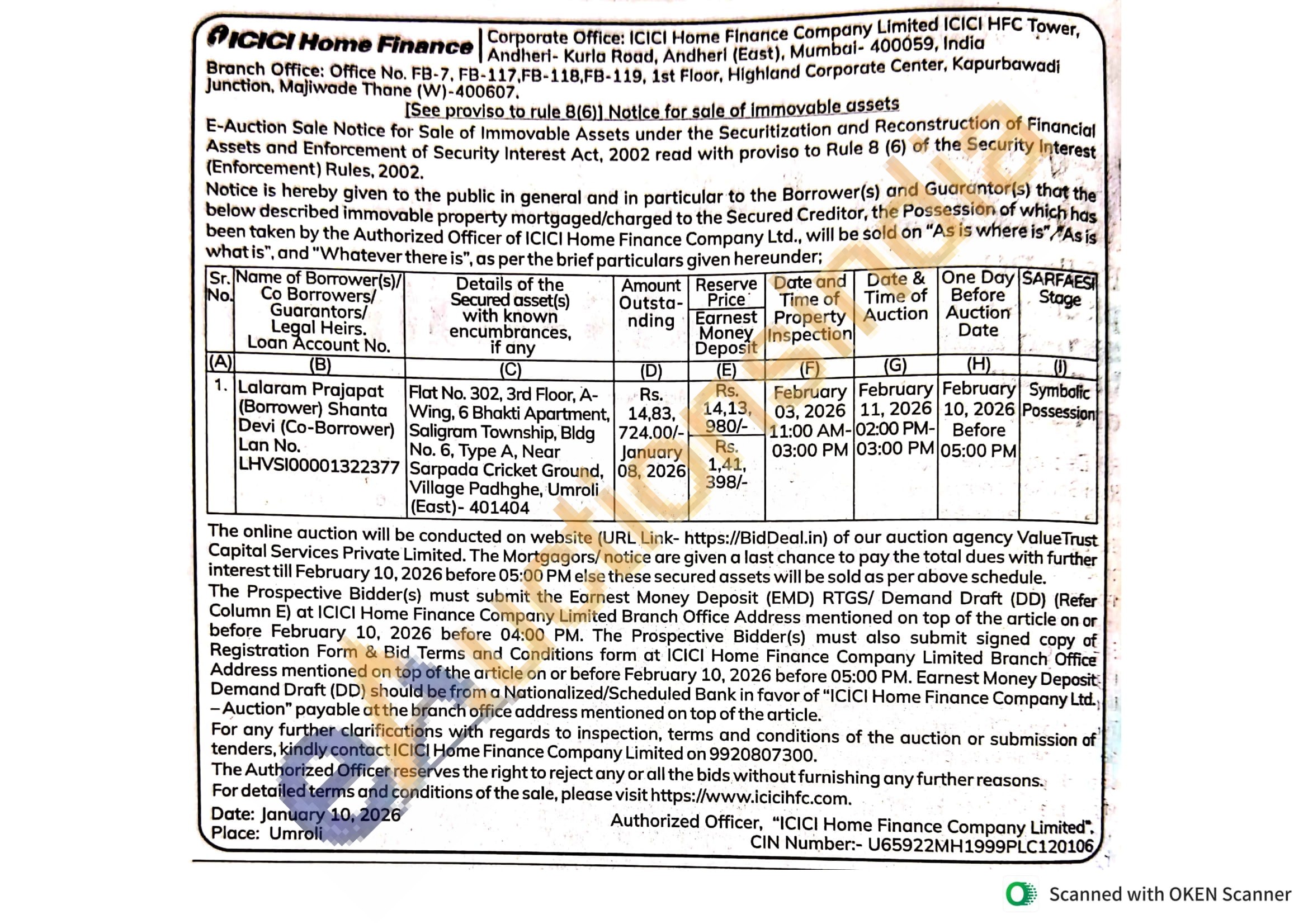 Flat No. 302, 3rd Floor, A-Wing, 6 Bhakti Apartment, Saligram Township, Bldg No. 6, Type A, Near Sarpada Cricket Ground, Village Padhghe, Umroli (East)-401404
