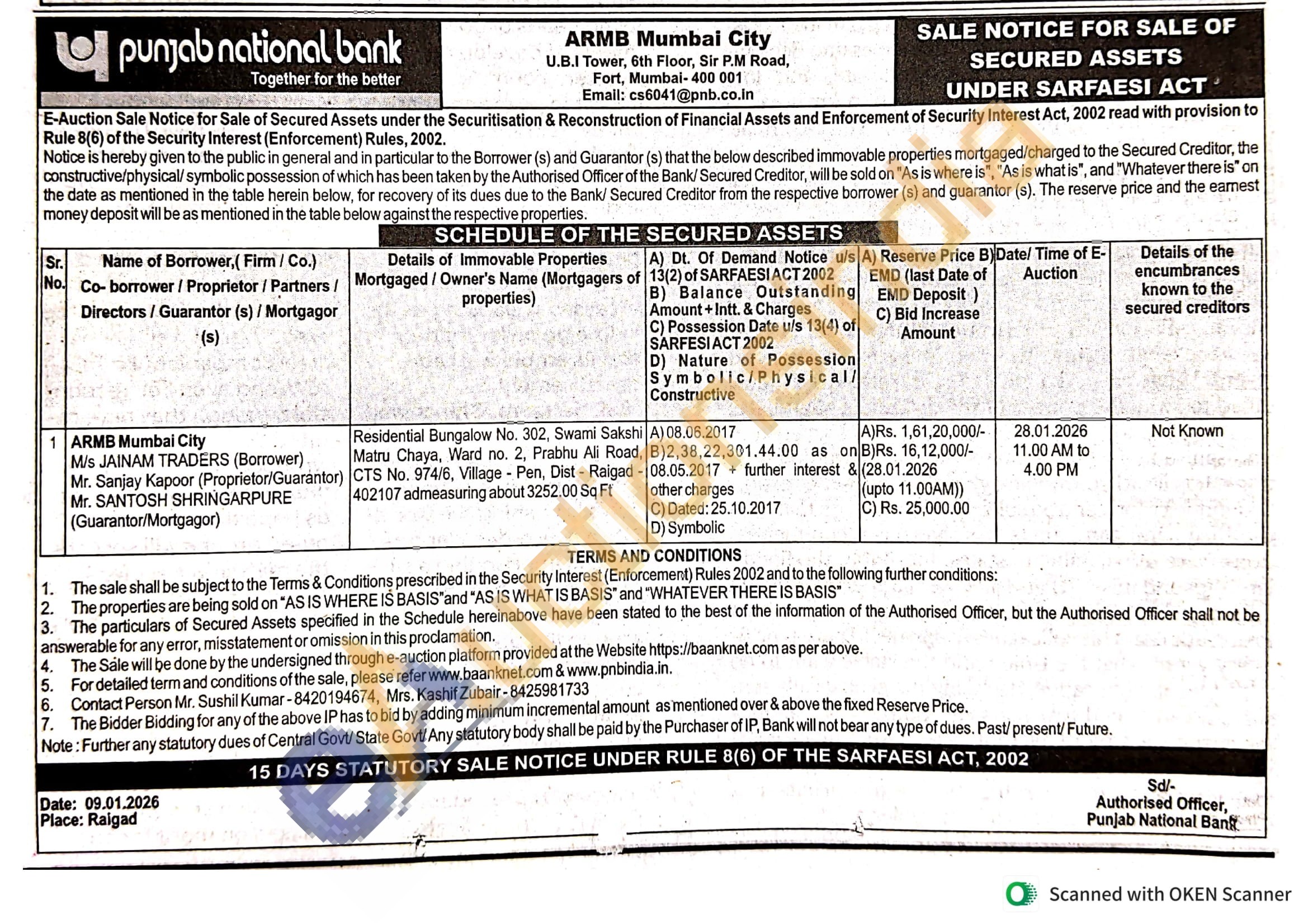 Residential Bungalow No. 302, Swami Sakshi Matru Chaya, Ward no. 2, Prabhu Ali Road, CTS No. 974/6, Village - Pen, Dist - Raigad -402107 admeasuring about 3252.00 Sq Ft