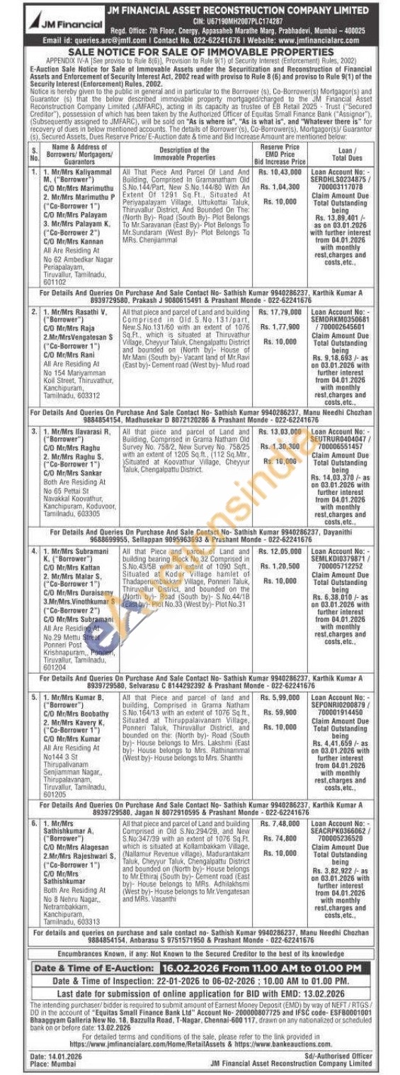 5) All that Piece and parcel of land and building, Comprised in Grama Natham S.No. 164/13 with an extent of 1076 Sq. ft., Situated at Thiruppalaivanam Village, Ponneri Taluk, Thiruvallur District, and bounded on the: (North by) Road (South by) House belongs to Mrs. Lakshmi (East by House belongs to Mrs. Rathinammal (West by)-House belongs to Mrs. Shanthi