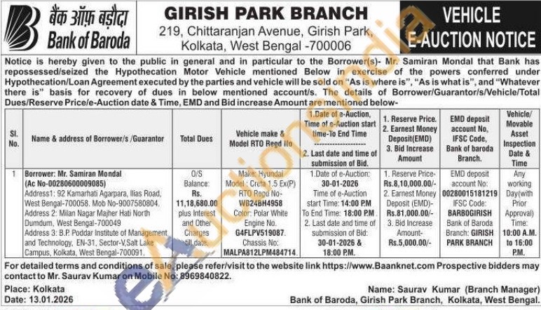 Vehicle make & Model RTO Regd No : Make: Hyundai Model: Creta 1.5 Ex(P) RTO Regd No-WB24BH4958 Color: Polar White Engine No. G4FLPV519087. Chassis No: MALPA812LPM484714