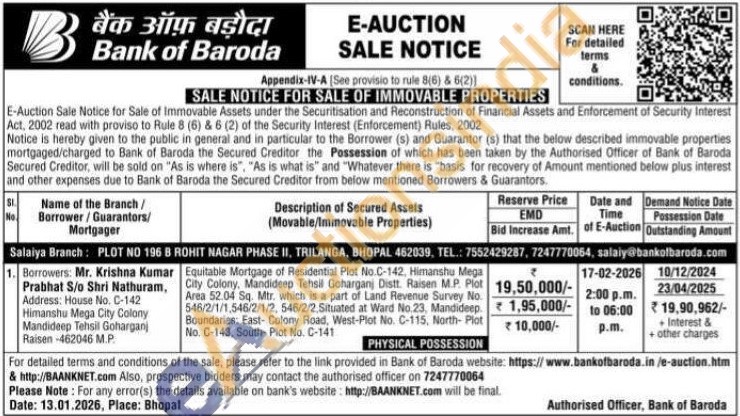 Equitable Mortgage of Residential Plot No.C-142, Himanshu Mega City Colony Mandideep Tehsil Gohardan iste Raise MP. Plot Area 52.04 Sq. Mtr. which is a part of Land Revenue Survey No. 546/2/1/1,546/2/1/2, 546/2/2, Situated at Ward No.23, Mandideep. Boundaries: East- Colony Road, West-Plot No. C-115, North-Plat No. C-143, South-Plot No. C-141