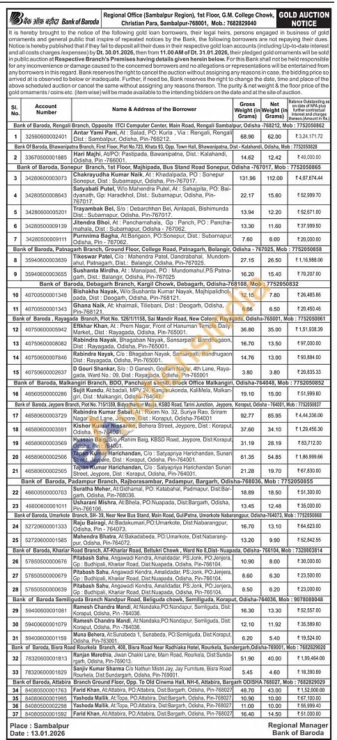 Bank of Baroda Gold Auctions Auction in Sambalpur