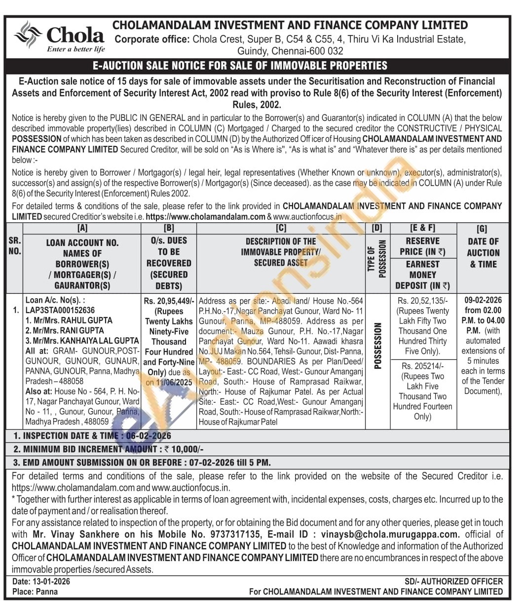 Address as per site:- Abadi land/ House No.-564 P.H.No.-17, Nagar Panchayat Gunour, Ward No-11 Gunour, Panna, MP-488059. Address as per document: Mauza Gunour, P.H. No.-17, Nagar Panchayat Gunour, Ward No-11. Aawadi khasra No.JUJ Makan No.564, Tehsil-Gunour, Dist-Panna, MP-488059. BOUNDARIES As per Plan/Deed/Layout:- East:- CC Road, West:- Gunour Amanganj Road, South: House of Ramprasad Raikwar, North: House of Rajkumar Patel. As per Actual Site: East: CC Road, West: Gunour Amanganj Road, South: House of Ramprasad Raikwar, North:-House use of Rajkumar Patel
