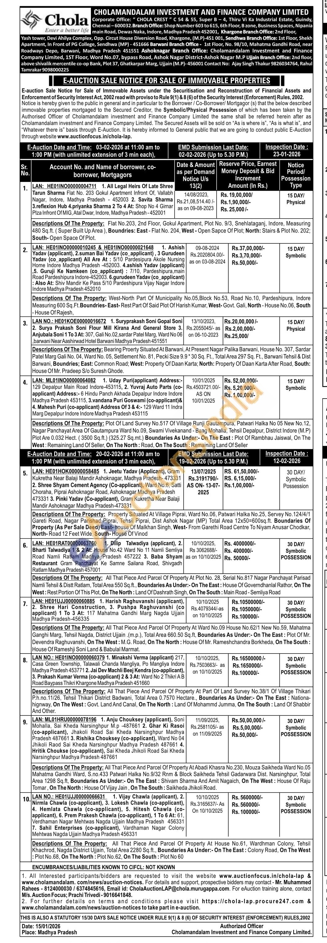 Descriptions Of The Property: All That Piece And Parcel Of Property At House No.61, Wardhman Colony, Tehsil Khachrod, Nagda District Ujjain, Total Area 2280 Sq.ft., Boundaries As Under:- On The East: Colony Road, On The West Plot No.68, On The North: Plot No.62, On The South: Plot No 60