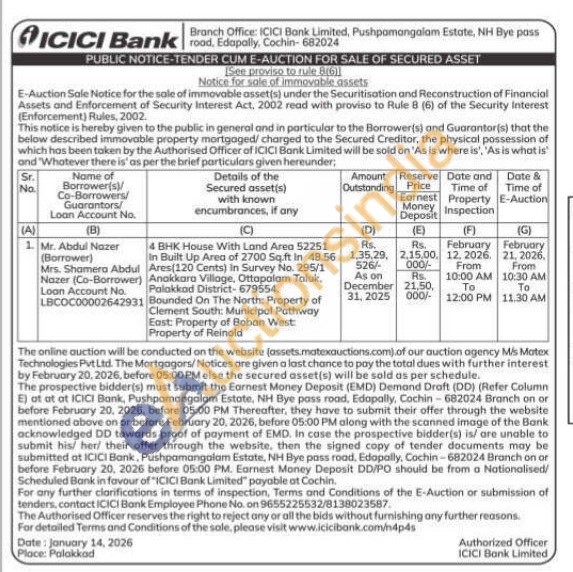 4 BHK House With Land Area 52251 In Built Up Area of 2700 Sq.ft in 48.56 Ares (120 Cents) in Survey No. 295/1 Anakkara Village, Ottapalam Taluk, Palakkad District-679554. Bounded On The North: Property of Clement South: Municipal Pathway East: Property of Boban West Property of Reinold
