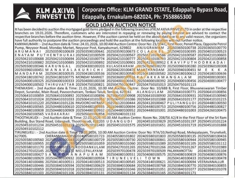 KLM Axiva Finvest Ltd Gold Auctions Auction in Kanyakumari
