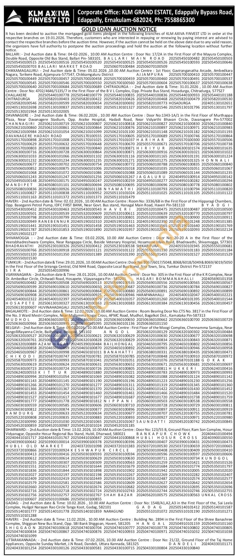 KLM Axiva Finvest Ltd Gold Auctions Auction in Ballari