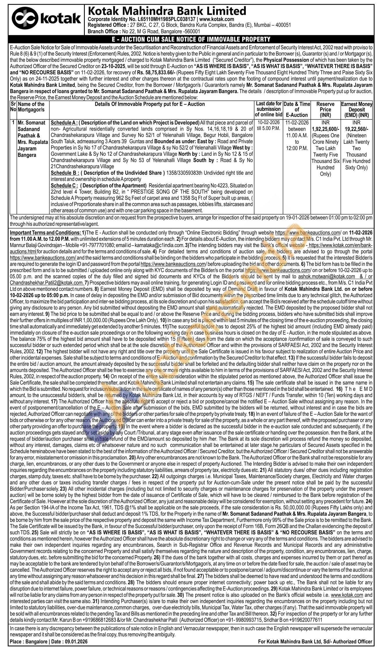 Mr. Karun B on +919686812683 &/or Mr. Chandrashekhar Patil (Authorized Officer) on +91-9980993715, Sridhar B on +919620077611