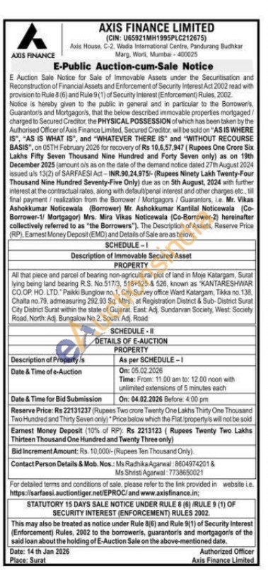 All that piece and parcel of bearing non-agricultural plot of land in Moje Katargam, Surat lying being land bearing R.S. No.517/3, 518+525 & 526, known as "KANTARESHWAR CO.OP HO. LTD. Paikki Bunglow no. 1, City Survey office Ward Katargam, Tikka no. 138. Chalta no.79, admeasuring 292.93 Sq. Mtrs at Registration District & Sub-District Surat City District Surat within the state of Gujarat. East Adj, Sundarvan Society, West Society Road, North Adj Bungalow No.2. South: Adj. Road