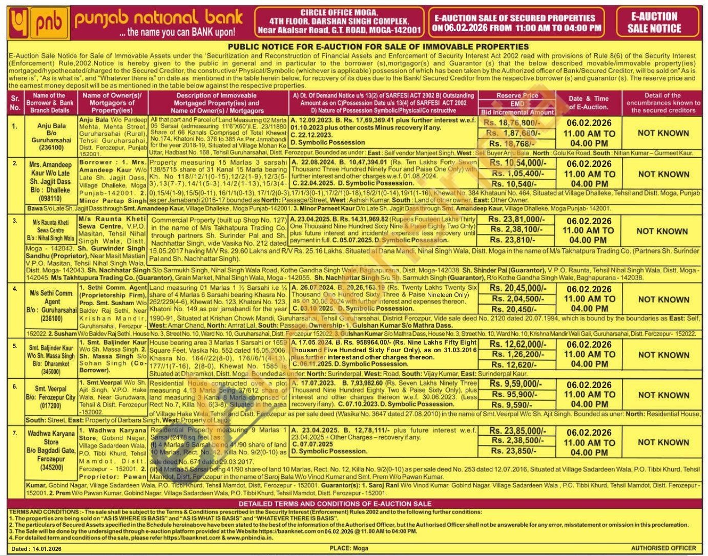 Commercial Property (built up Shop No.127) in the name of M/s Takhatpura Trading Co.through partners Sh. Surinder Pal and Sh.Nachhattar Singh, vide Vasika No. 212 dated 15.05.2017 having M/V Rs. 29.60 Lakhs and R/V Rs. 25.16 Lakhs, Situated at Dana Mandi, Nihal Singh Wala, Distt. Moga in the name of M/s Takhatpura Trading Co. (Partners Sh. Surinder Pal and Sh. Nachhattar Singh)