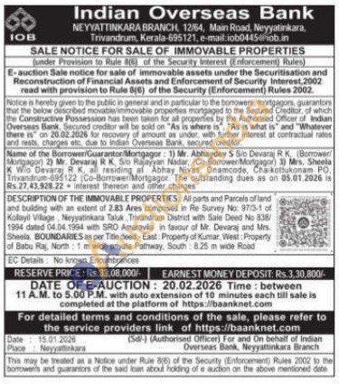 Al parts and Parcels of land and building with an extent of 2.83 Ares composed in Re Survey No: 97/3-1 of Kolayil Village, Neyyatinkara Taluk Trivandrum District with Sale Deed No 338/1994 dated 04.04.1994 with SRO Amaravilla in favour of Mr. Devaraj and Mrs. Sheela BOUNDARIES as per Title deed-East: Property of Kumar, West: Property of Babu Raj North: 1m wide private Pathway, South: 8.25 m wide Road