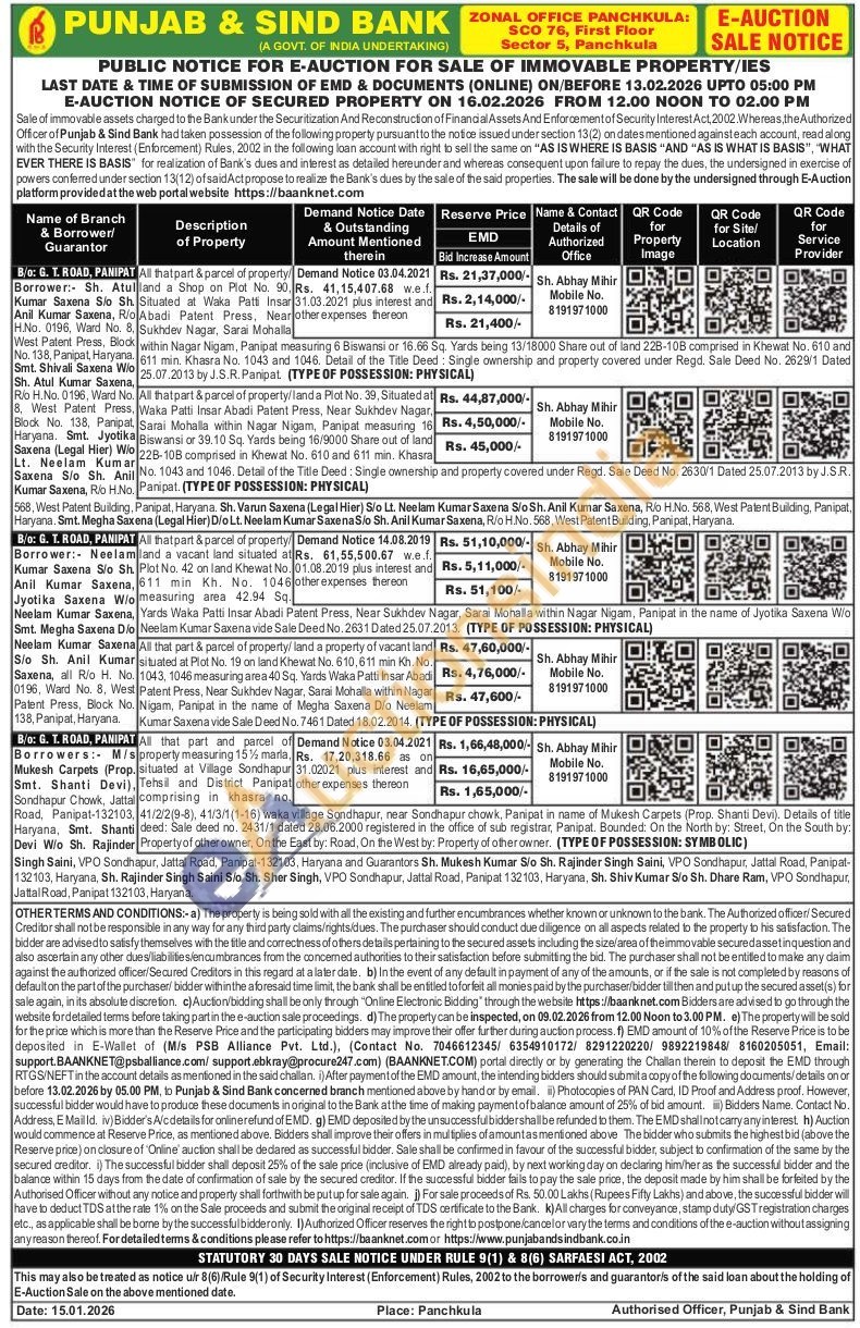 All that part & parcel of property/land a Plot No. 39, Situated at Waka Patti Insar Abadi Patent Press, Near Sukhdev Nagar Sarai Mohalla within Nagar Nigam, Panipat measuring 16 Biswansi or 39.10 Sq. Yards being 16/9000 Share out of land 22B-10B comprised in Khewat No. 610 and 611 min. Khasra No. 1043 and 1046. Detail of the Title Deed: Single ownership and property covered under Regd. Sale Deed No. 2630/1 Dated 25.07.2013 by J.S.R.Panipat