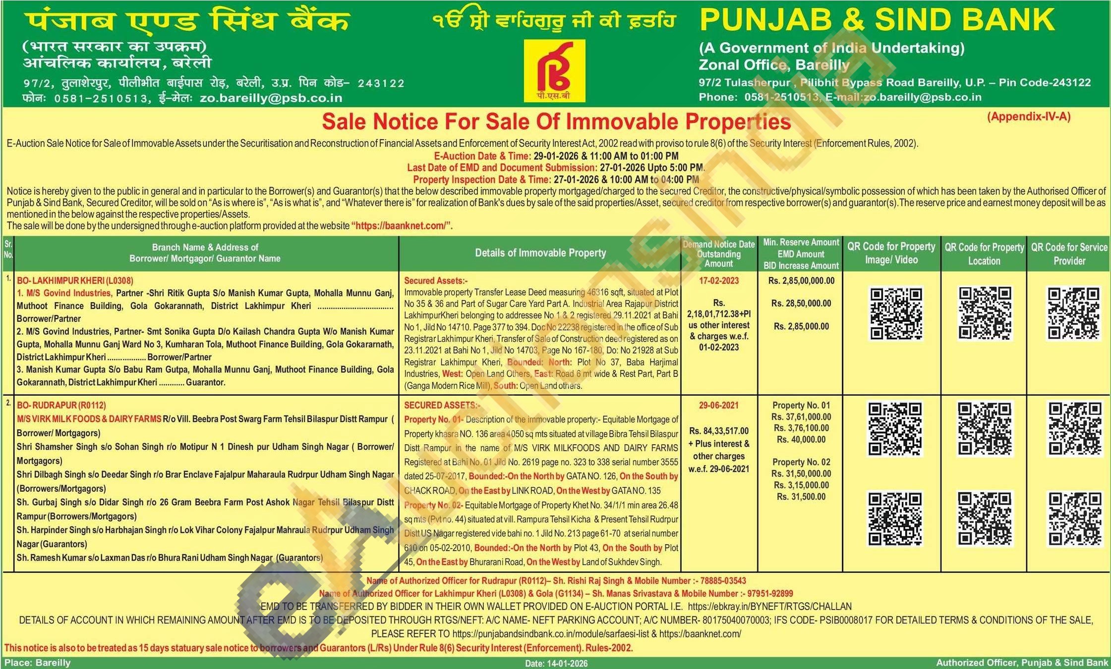Authorized Officer for Rudrapur-Sh. Rishi Raj Singh Mobile Number:-7888503543 / Authorized Officer for Lakhimpur Kheri Gola -Sh. Manas Srivastava Mobile Number:- 9795192899