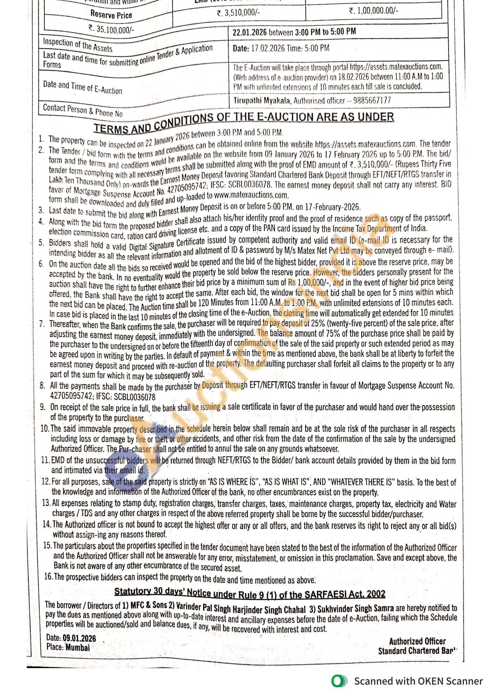Contact Tirupathi Myakala, Authorised officer - 9885667177