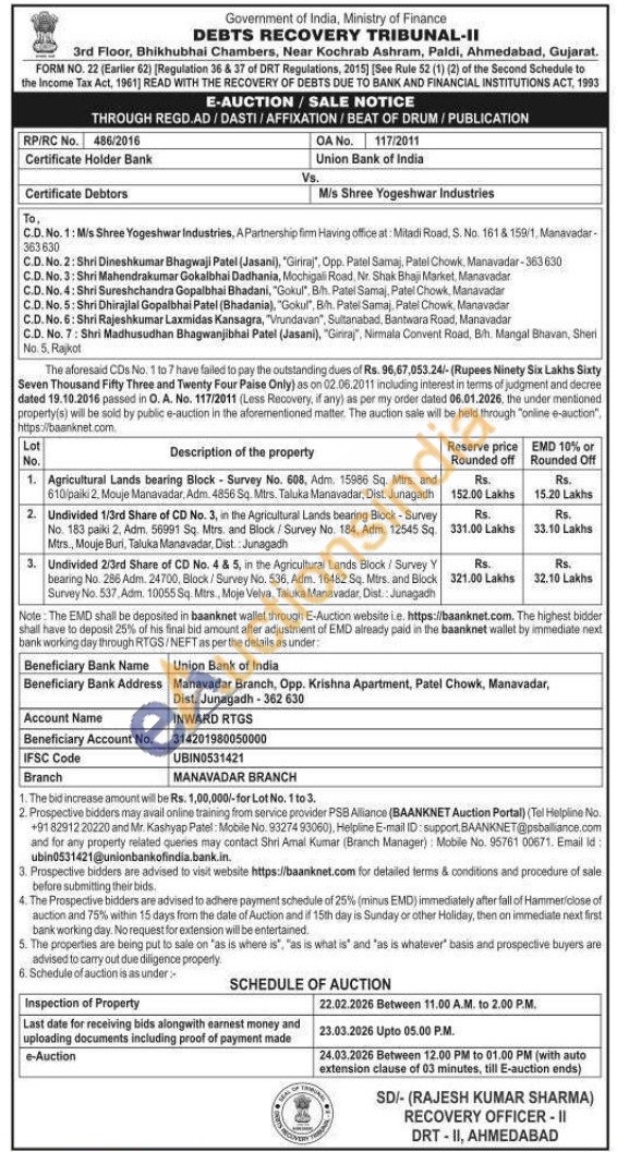 Agricultural Lands bearing Block Survey No. 608, Adm. 15986 Sq. Mtrs. and 610/paiki 2, Mouje Manavadar, Adm. 4856 Sq. Mtrs. Taluka Manavadar, Dist., Junagadh