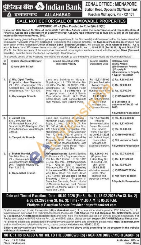 Mortgaged Assets: Land & Building at Mouza Vill - Shyamsundarpur, Plot No. 1147, Khatian L.R. No. 1812, J.L. No. 156. P.O.-Jotekanuramgarh, P.S. Ghatal, Dist Paschim Midnapore, Pin-721 212, standing in the name of Shri Bibhas Mandal vide Sale Deed No. 3225 dated 24.07.2018. Boundaries of the Property: North Property of Sasadhar Samanta, South: House of Muktaram Manna, East: Vacant Land of Lila Manna, West: 7 Ft. Wide Road and Canal