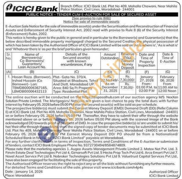 Plot- Gata No. 370/4, Situated at Bhadaura, Tehsil And Distt. Moradabad UP, Area: 840 Sq Ft Property Type: Residential Plot
