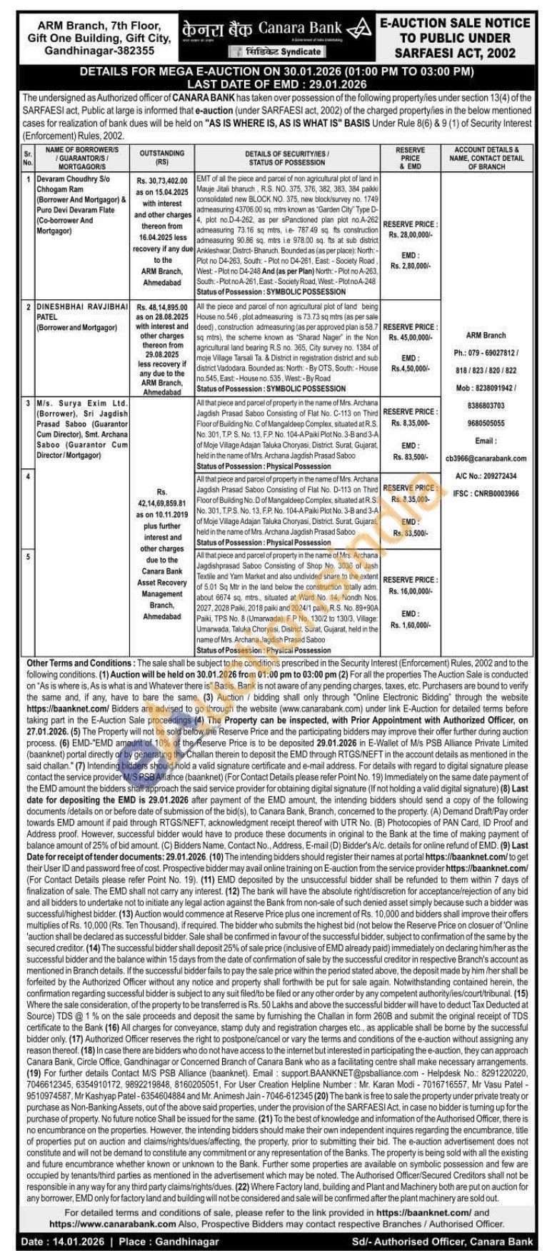 Contact ARM Branch Ph.: 079-69027812/ 818/823/820/822 Mob: 8238091942/ 8386803703 9680505055