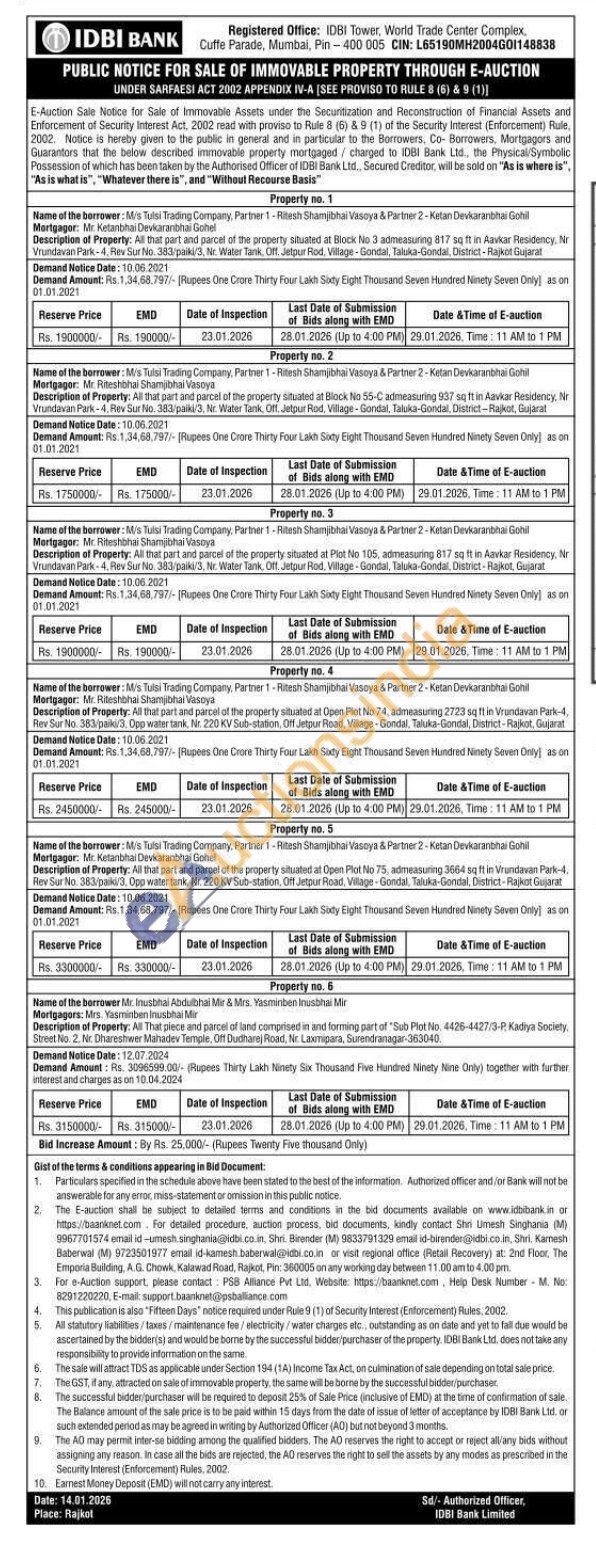 4) All that part and parcel of the property situated at Open Plot No 74, admeasuring 2723 sq ft in Vrundavan Park-4, Rev Sur No. 383/paiki/3. Opp water tank, Nr. 220 KV Sub-station, Off Jetpur Road, Village-Gondal, Taluka-Gondal, District-Rajkot, Gujarat