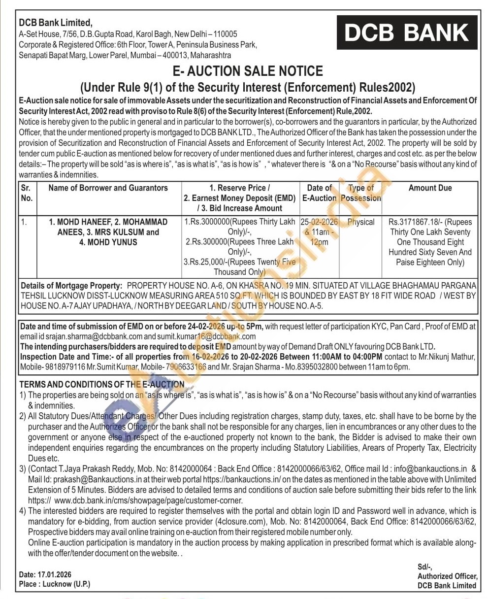 PROPERTY HOUSE NO. A-6, ON KHASRA NO. 19 MIN. SITUATED AT VILLAGE BHAGHAMAU PARGANA TEHSIL LUCKNOW DISST-LUCKNOW MEASURING AREA 510 SQ.FT. WHICH IS BOUNDED BY EAST BY 18 FIT WIDE ROAD/WEST BY HOUSE NO.A-7AJAY UPADHAYA,/NORTH BY DEEGAR LAND/SOUTH BY HOUSE NO. A-5.