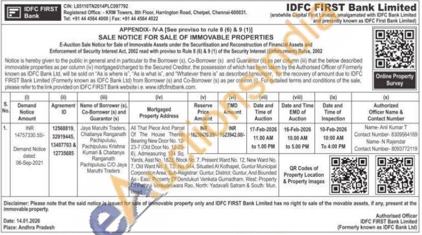 All That Piece And Parcel Of The House Therein Bearing New Door No. 12-23-7 (Old Door No. 12-23-6). Admeasuring 134 Sq.Yards, Asst No. 1823, Block No. 7, Present Ward No. 12, New Ward No. 7, Old Ward No. 5. TS. No. 544, Situated At Kothapet, Guntur Municipal Corporation Area, Sub-Registrar: Guntur, District, Guntur, And Bounded As- East: Property Of Dendukun Venkata Gumadham, West: Property Of Pathrui Venkateswara Rao, North: Yadavalli Satram & South: Mun Road