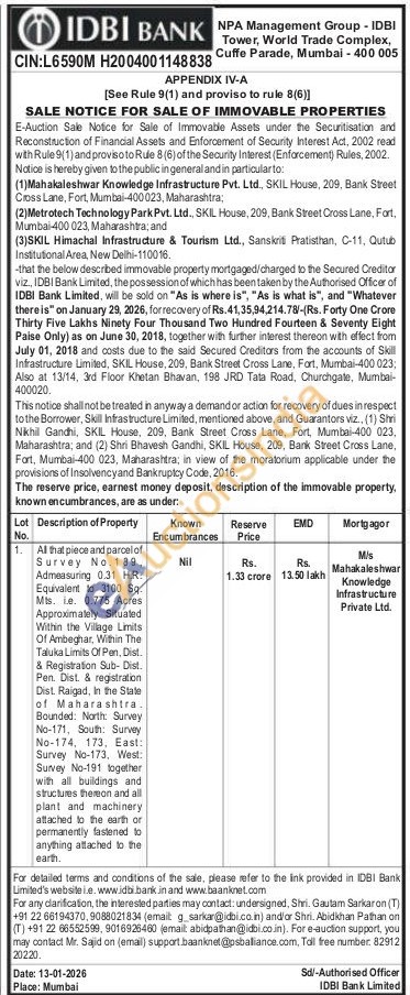 All that piece and parcel of Survey No.189. Admeasuring 0.31 HR. Equivalent to 3100 Sq. Mts. i.e. 0.775 Acres Approximately Situated Within the Village Limits Of Ambeghar, Within The Taluka Limits Of Pen, Dist. & Registration Sub-Dist. Pen. Dist. & registration Dist. Raigad, In the State of Maharashtra. Bounded: North: Survey No-171, South: Survey No-174, 173, East: Survey No-173, West: Survey No-191 together with all buildings and structures thereon and all plant and machinery attached to the earth or permanently fastened to anything attached to the earth