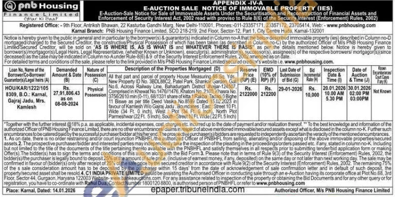 All that part and parcel of property House Measuring 85 Sq. Yds New Property ID No. 380L38C2, Patel Park, Shankar Garden, Gall No.8. Across Railway Line, Bahadurgarh District Jhajar-124507, Comprised in Khawat No. 14761476, Khatoni No. 2160, Khasra No. 3756/2610 min (0-11), 68/1331 share of kitta 1 Rakba Tadadi D Bighe 11 Biswe as per title Deed Vasika No 8599 Dated 15.02.2023 in favour of Kamlesh Wio Gajraj Jadu Boundaries: East: Street 10 Ft Wide (34 Ft 0 inch), West Plot (34 Ft. 0 Inch), North Plot Parmeshwar (22 Ft. 5 inch), South-Street 10 Ft. Wide (22 FL.5 Inch)