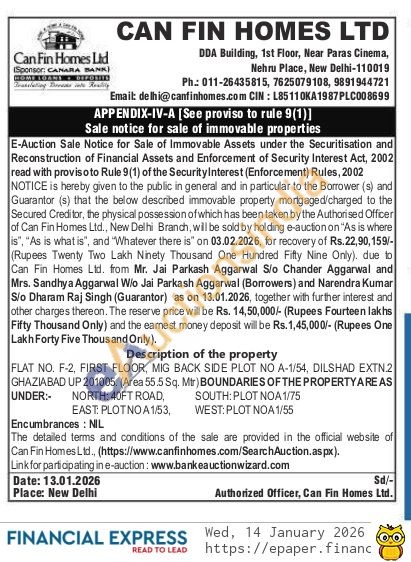 FLAT NO. F-2, FIRST FLOOR, MIG BACK SIDE PLOT NO A-1/54, DILSHAD EXTN.2 GHAZIABAD UP 201005. (Area 55.5 Sq. Mtr) BOUNDARIES OF THE PROPERTY ARE AS