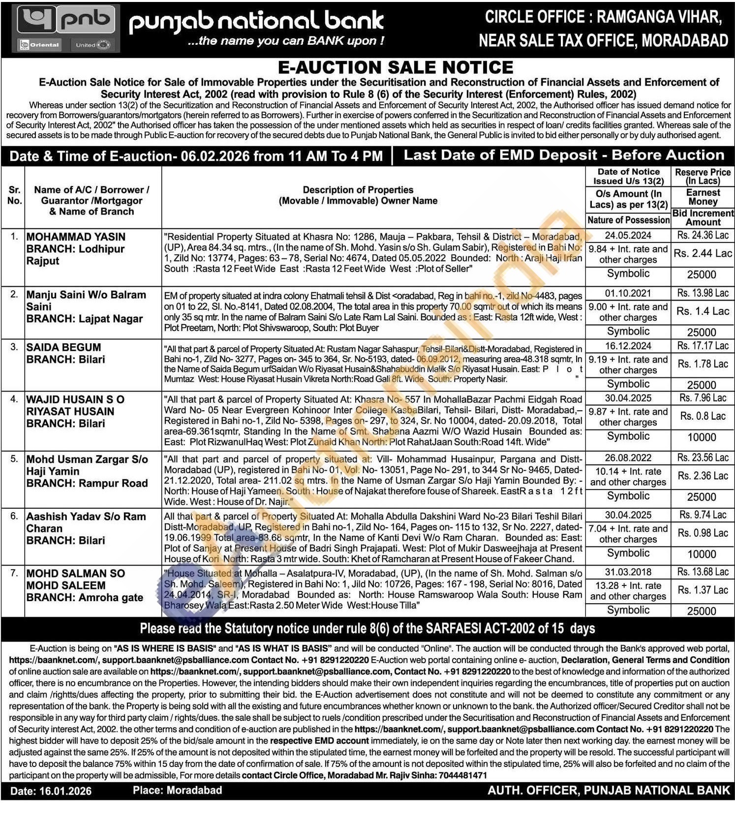 Contact Circle Office, Moradabad Mr. Rajiv Sinha: 7044481471